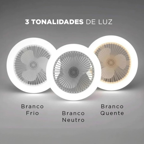 Fabricada em plástico ABS de alta resistência, a luminária garante durabilidade e segurança no uso contínuo. Sua estrutura mede aproximadamente 19 centímetros de diâmetro e 8,5 centímetros de altura sem o suporte, e 19 por 19,5 centímetros com o suporte. O produto acompanha controle remoto multifuncional que permite ligar e desligar tanto a luz quanto o ventilador, alterar as tonalidades de iluminação e configurar o temporizador. O funcionamento é suave, com baixo consumo energético e excelente desempenho em qualquer ambiente interno.